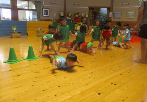 2019年7月19日 お泊まり保育☆No2(ゲーム~夕飯) 続きまして園長先生によるゲーム!! チーム対抗戦で大盛り上がり♬ 白熱したゲームを 繰り広げていました!! 1位 にじいろにんじゃ 2位 あさがお 3位 たいよう 結果は関係なく みんなが楽しみ 笑顔と汗がいっぱい(^o^) 頑張った後には おやつで一休み♬ 次はプラバン作り! なに描こうかな~? みんな思い思いの絵を描きました☆ トースターの前では 「まっすぐなりますように」と願い、 くしゃくしゃになったプラバンもまっすぐなったね! 素敵な思い出の品と なりました♬ 次はお待ちかね夕飯!! 自分たちで食べる量を考え ご飯、ルーをお皿に盛りました! みんなで美味しく頂きました♬ おかわりもたくさんのお友達が してくれました! いっぱい食べて元気100倍!! 次は何かな~?? Tweet Share