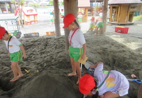 2022年2月14日 元気に外で体育遊び☆ げんきだはだかだげつようび! 田中先生と外で体育遊びをしました。 あかさんも今日はドッヂボールに挑戦! 以前からボール遊びをしていたので投げることが上手でした☆ また、ボールをよく見て遠くまで逃げていたね。 きさんはドッヂボールの前にボール鬼ごっこ♪ 背中にボールを当てたり当たらないように逃げました。 そのあとのゲームでは背中を見せないように 外野ボールから逃げることを意識しました。 みどりさんはフープを使いボールを遠くに 的を絞って投げる練習をしたよ! 集中してボールを投げることができました。 ドッヂボールではただ逃げるだけでなく 積極的にボールをとりにいく子が増えてきました☆ ドッヂボールもだんだん慣れてきた様子です。 みんなで協力する遊びも盛り上がるね☺ Tweet Share
