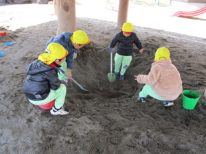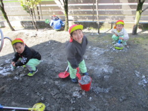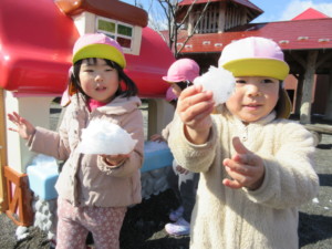 2024年3月21日 寒くても元気いっぱい☀ 今日は昨日の雪の影響で肌寒い日でしたが、 子どもたちは元気いっぱい遊びました♬ お友達と仲良くドッジボール☆ 内野の子を狙って力強く投げたり、 相手の子の動きを見て俊敏に逃げたりと 頭を使って体を動かしました!!! みんなの膝がすっぽりはまってしまうくらいの 大きな穴掘りに成功✨ 『これ、どこまで深くなるんだろう…?』 園庭には昨日の雪や氷が残っていました⛄ バケツいっぱい詰め込んだり 手より大きい雪を握りしめたりと 存分に雪遊びを楽しみました❄ Tweet Share