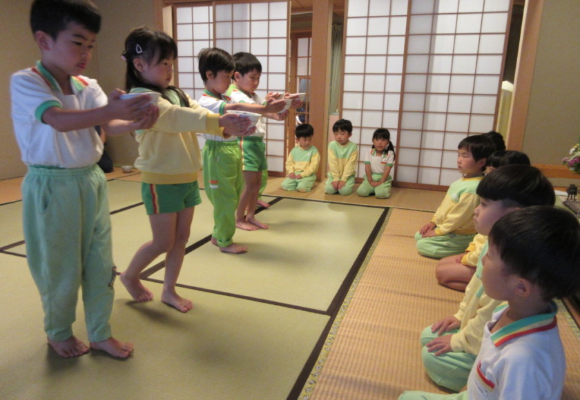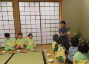 2024年5月7日 かわいいお抹茶🍵 今日は今年度初めての お抹茶でした。 みどりさんのお運びさんは 腕も背筋もまっすぐで かっこいいね☆ 床の間の掛け軸は てんとう虫さんや 春のお花が描かれていたね🌼 きいさんも静かな気持ちで お抹茶室に入室しました。 久しぶりのお抹茶 美味しかったね😊 「このお花はなんでしょう?」 「しらん、、、、?」 紫蘭(しらん)です! 紫の綺麗なお花だね! あかさんは初めてのお抹茶!! おいしいおまんじゅうとお抹茶を 頂きました! 初めてのお抹茶の味はどうだったかな? ももさんは元気いっぱい サーキット遊び! 「よいしょ!よいしょ!」 体を動かすことができて 楽しいね! 雨の日でしたが 楽しく過ごす事が出来ました♡ Tweet Share