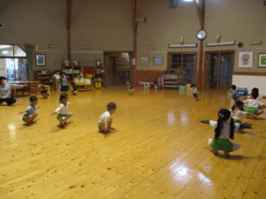 2024年5月1日 リズムに乗ってリトミック☆ すいすいはしろう水曜日! 今日は雨が降ったりやんだりしていたよ 元気いっぱいにリトミックができたね☆ ももさんは、トンボさんに変身!足をピーン! はい!ポーズ!1・2・3・4・5! 足が上がっててすごいね!拍手!拍手! あかさんは、どんぐりさんの真似っこ! どんぐりどんぐりこーろころ♬ お友達にぶつからないように、 上手にコロコロ転がれたね! きいさんは、あひるさんの真似っこ! よっち よっち♬あひるさん♬かわいいね~ みんな背筋がピーンと伸びててかっこいい! さすがみどりさん!側転に挑戦したよ! 忍者みたいでかっこいいね! 他の子もできるかな~? Tweet Share
