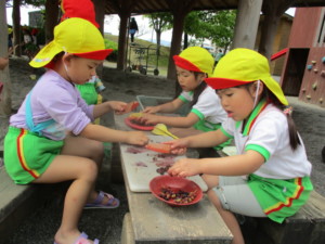 2024年5月2日 久しぶりのいいお天気だったね☀ 今日は久しぶりのいいお天気でした☀ 薄着で元気いっぱい過ごしました♬ 『じゃんけんポン!!!』お友達と仲良く勝負🔥 どっちが勝ったかな!? きいさん真剣にお料理タイム🍴 すり潰すのに夢中になっています。 どんなごちそうが出来上がったかな??? たくさん型を並べて楽しくお話(^^) お友達と関わって遊ぶ楽しさが笑顔で物語っていますね♡ さくらんぼの実がなったよ!🍒 みんなで摘んで…パクッ!! おいしかったね😋 またお休み明け元気なお顔を見せてね😊 Tweet Share