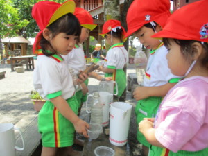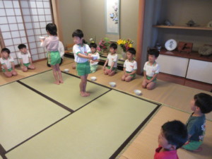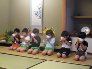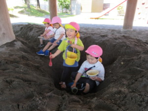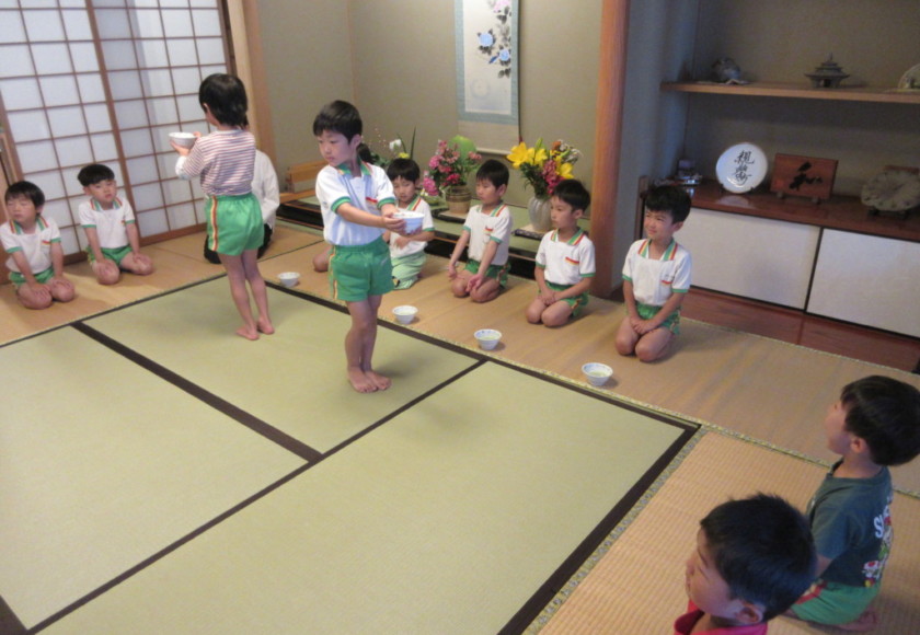 2024年6月4日 お抹茶うれしいな😊 今日はかわいいお抹茶火曜日! お抹茶がありました!! 綺麗な姿勢でお茶を運ぶ お運びさんと お背中ピンピンで 待つことが出来るお客様。 どちらもかっこいいね!! 右手でお茶碗を持って 左手で支えて頂きます! あかさんもだんだんお抹茶に 慣れてきて立派さんがたくさんで 嬉しいです! 「なんかある!」 「どれどれ?」 「なんか桃みたい!」と 木になっている実を発見👀 お山にはいろんな発見があるよ! 桑の実や泥んこで ジュース作り☆ ジュース屋さん、何時開店かな? みどりさんやきさんが 掘った穴にももさんが 「おじゃましまーす!」 砂場遊びって 面白いね! いいお天気になって いっぱい遊んで 楽しかったね! また明日も元気いっぱい 遊ぼうね!!! Tweet Share