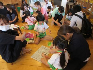 2024年6月26日 保育参観がありました☆ 今日は保育参観がありました。 普段のこども園での遊びの様子を見て頂きました。 お家の方と一緒に遊べてニッコリ笑顔が みられて嬉しかったです。 砂場では大きな穴を掘って遊んだよ♪ 裸足が気持ちいいね😄 みどりさんは一緒に製作をしたよ☆ 素敵なブンブンごまが出来たね。 お膝の上に座って好きな絵本を読んでもらい ゆったりとした時間がすごせました。 大きいクラスの子も今日はお家の方をひとり占め♡ お忙しい中、お出かけ下さりありがとうございました。 Tweet Share