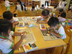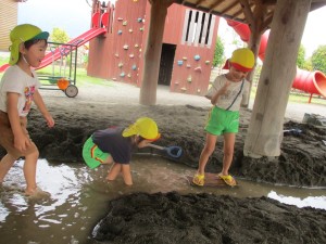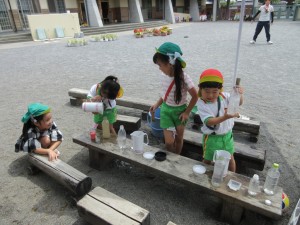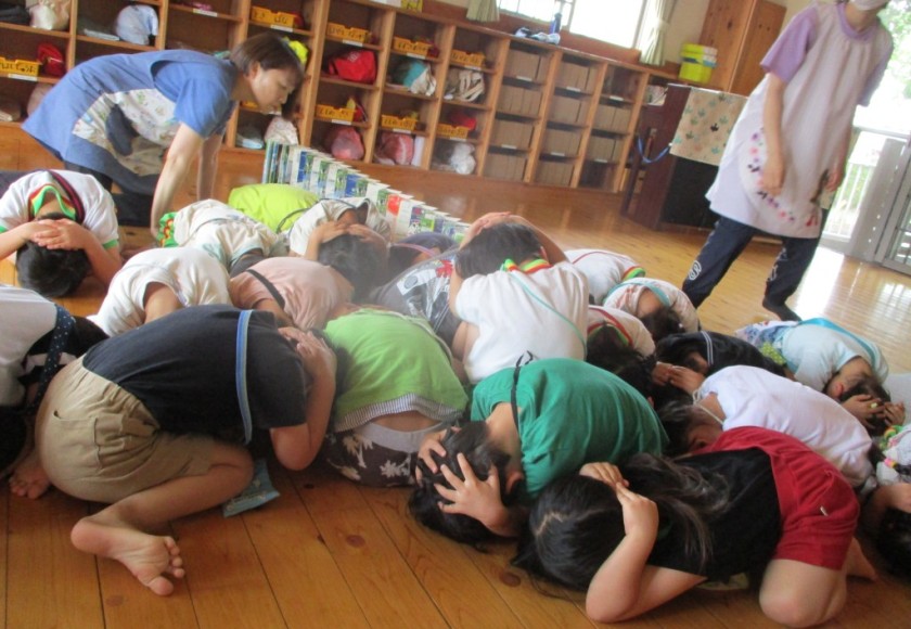 2024年6月27日 命を守ろう!!! もりもり食べよう 木曜日🍴 今日は地震の避難訓練がありました。 放送を聞いて地震だと知り、揺れが収まるまで “だんごむしポーズ”で頭を守ります。 おゆうぎ室に避難してからは先生達が人数報告をして みんなの無事を確認します。 その後は防災についてお話を聞きます。 防災リュックの中には何が入っているかな??? 非常食や保存水など命を守るための物が たくさん入っていることを教えてもらったよ!!! 優しいみどりさんがあかさんのお世話をしてもらえて ジュース屋さん開店です🍹 暑い日には冷たい飲み物が体に染みるね✨ ただ、飲み過ぎには注意だね(^^;) 手足を水につけて泥んこ遊び楽しいね♬ 砂場の砂と水の中の泥の感触の違いを楽しめて 面白いね(*^_^*) もうすぐ七夕🎋 織り姫様と彦星様のお顔はどんなお顔かな??? 想像しながらお絵かき楽しいね☆ ツマグロヒョウモンが遊びに来てもらえました🦋 ひらひら舞う姿に興味津々!!! 捕まえようとする元気なももさんでした★ Tweet Share
