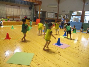 2024年7月24日 たくさん体を動かしたよ! 今日朝は、ゲリラ豪雨があったね🌩 大きな雷の音にビックリしているお友だちや ワクワクして喜んでいるお友だちがいたよ とても楽しいリーベがあったね! あかさんは みんなの足で トンネルの中を通って 果物が欲しいお友だちに 届けに行ったよ! きさんは三角コーンを小人さんに見立てて どんどん小人さんを寝かせたり 起こしたりしていったよ どのチームがはやいかなぁ? みどりさんはフープのクジラさんのお口の中を 次々と、くぐって遊んだね🎵 ももさんでは新聞遊びをしたよ みんなでちぎった新聞紙を雨に見立てたり たくさん集めて上から一気にかけてもらったり とても楽しかったね お外で遊べなかったけど 元気に体を動かすことができて楽しかったね☺ 今日どんなことをして遊んだのか お家の人にお土産話しを聞かせてあげてね Tweet Share