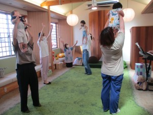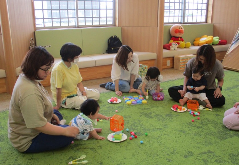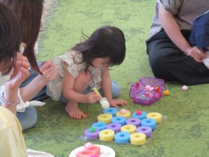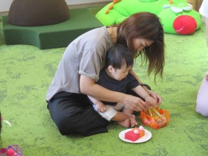 2024年7月3日 脳トレピアノキッズ 今日は支援室で脳トレピアノキッズがありました。 お二人の先生にお越し頂いて、 非認知能力を育てよう: 自分で考えて未来を切り拓いていける力をつけてほしいと いう願いの元、音を聴いて遊びました。 ケーキ🎂の絵本を見せてもらった後、 みんなでケーキを作って遊んだよ。 お母さんと一緒にピアノの音を聞きわけて、 ①卵をこっつんぱ!と割る。 ②卵をシャカシャカシャカと混ぜる。 ③砂糖、小麦粉、ミルクをゆっくり混ぜる。 ①②③の動きをしたよ。 ケーキがだんだん膨らむ様子を お母さんに抱っこしてもらって表現したよ♬ 手作りトングで、果物をのせてショートケーキ🍰 ロールケーキの穴にクリームや果物をのせて遊んだよ。 集中・色の選択・指先を使う事など、遊びの中で たくさんの学びがありました✨ 脳トレピアノキッズは来月も開催しますので 是非あそびに来てくださいね。 Tweet Share