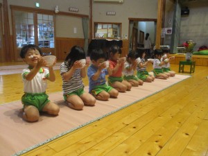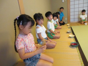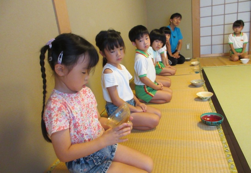 2024年8月6日 キラキラ透明茶碗! 今日はお抹茶がありました! 夏茶碗でお抹茶を頂きます🍵 すいかの柄、透明な茶碗、色々な 模様や柄が描かれたお茶碗は 素敵だね♡ 「お茶をおあがりください」と お運びさん。かっこいい姿勢で お抹茶を頂ける子がたくさんです! あかさんも背中ピンピン! 「おいしいね~」と にっこり😄 今日も元気いっぱい水遊び💦 「ぶくぶくぶく~」と潜ることができるよ! 「バタバタバターッ」バタ足が ダイナミック!!! 明日もげんきいっぱい 遊ぼうね! Tweet Share
