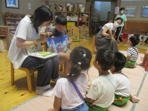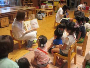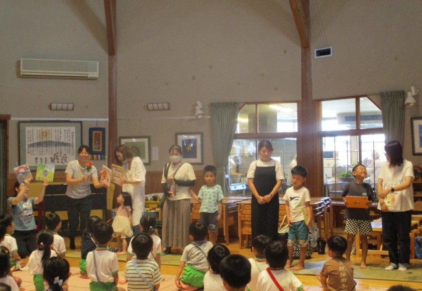 2024年8月8日 読み聞かせやお姉さんとのゲーム 楽しかったね(*^_^*) もりもり食べよう 木曜日🍴 今日は樋口先生の読み聞かせがあり たくさんのお家の方がお出かけ下さいました📖 まずは絵本の紹介です。 「どんな絵本があるのかな???」 「どの絵本を見に行こうかな???」 楽しみでドキドキ・ワクワク…♡ 卒園児であるお姉さんも読み聞かせに 参加してもらえたよ☆ お母さんの声は安心して耳に心地良いね😊 お兄ちゃんも一緒に読み聞かせてもらえ 嬉しかったね♬ みんな夢中になって絵本をジッと見て 聞き入っています。 お話面白かったね✨ 触れあいの時間はお互い落ち着きをもたらして コミュニケーションとして大切なひとときです♡ 樋口先生の手作り絵本の研修がありました🌼 お母さん方も子育て話に花を咲かせながら 折り紙のお花の折り方を教えて頂きました🌺 次回もぜひお出かけ下さいね。 お姉さんとレクリエーション♬ みどりさん きいさんは 王様ジャンケンや進化ジャンケン、 じゃんけん列車など楽しみました😄 楽しい遊びをたくさん教えてもらえ、大盛り上がり✨ みんなの笑顔がたくさん増え、温かい雰囲気の中で 遊べたね(*^_^*) 明日も元気に過ごそうね(^_^) Tweet Share