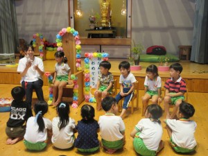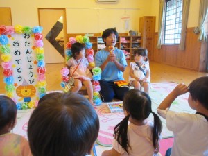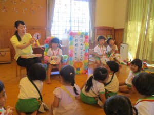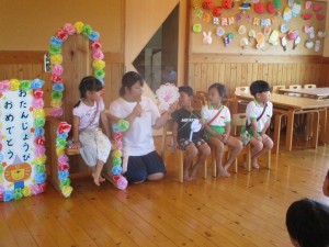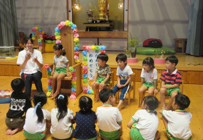 2024年9月11日 もりだくさんの1日だったね🎵 今日はもりだくさんの1日だったね。 その➀ きいさんはキッズヨガがありました。 お友達と協力しておいしいお寿司が出来上がり。 どんなネタが乗っているかな?? その② サンビレッジの学生さんと遊んだよ🎵 以前みえた学生さんで、こどもたちも覚えていて ニッコリ笑顔😊たくさん遊べてうれしいね。 その③ 8月、9月生まれの子のお誕生会をしたよ。 先生からカードの紹介をしてもらったよ。 クラスのみんなに「おめでとう!」と お祝いしてもらえてうれしいね😊 もうすぐ十五夜さんなので、うさぎさんが インタビューをしにやってきたみたいだよ☆ 今日のおやつはスペシャルおやつ!! 給食の先生手作りの「アメリカンドッグ」でした。 一人ひとりにケチャップのハート付きで お手間入りのおやつで大喜び!! ペロリとおいしく頂けました♡ 8月、9月生まれのおともだち お誕生日おめでとう☆ Tweet Share