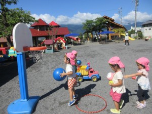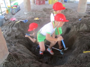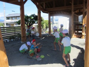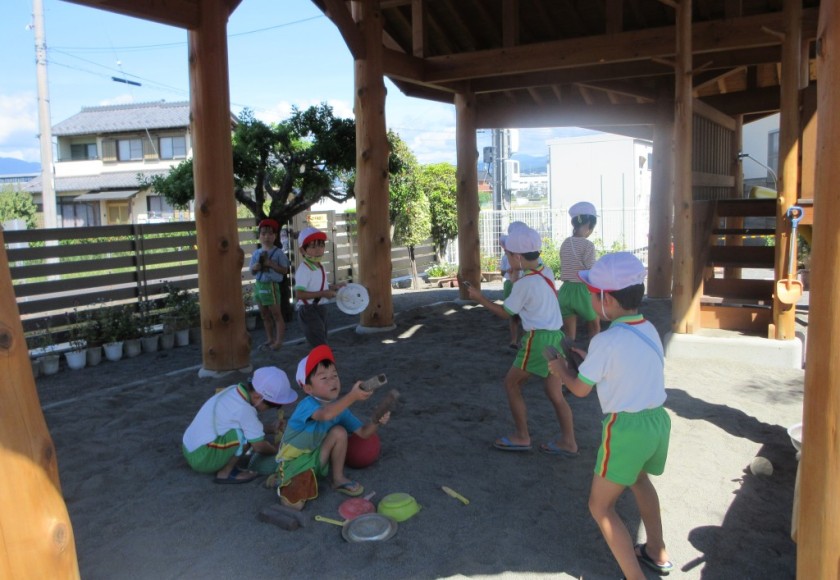 2024年9月12日 暑い日は日陰が気持ちいいね(*^_^*) 今日は9月も中旬に差し掛かってきた中ですが 気温が高く暑かったね💦 そんな時は日陰や木陰で涼みながら遊ぶのが①番✨ みどりさん 砂場でお料理したり お友達との会話を楽しみながらニッコリ笑顔😊 きいさん スコップで自分達の膝の辺りまで 深く掘っていけたね!!! 落とし穴みたいで面白いね☆ あかさん 十五夜に向けてお団子製作🌕 「お月様の中には、うさぎさんいるのかなぁ???」 「うさぎさんはお団子 食べられるのかな!?」などと 会話を楽しみながら製作しました🎵 ももさん ゴールめがけてボールを「えいっ!!!」 ジャンプして勢いをつけたりと工夫できて素敵だね✨ 明日も元気に遊ぼうね☆ Tweet Share