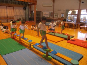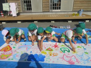 2024年10月21日 体育遊びがあったよ 今日は体育あそびがありました。 平均台を使って遊びました。 年長さんは細い平均台の上で すれ違えるかな~?に挑戦です。 仲間と相談しないと難しいですね☺ 声のかけ合いが大切です🎵 サンビレッジのお兄さんお姉さんが 遊びに来てもらえました。 みんなで追いかけっこが楽しめました。 秋が深まってきて 宝物がいっぱいだね☺ みどりさんが収穫した 「さつまいもの小さいさん」を使って 判子遊びをしました。 おもしろい形がたくさんできたね☺ Tweet Share