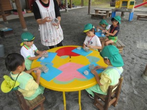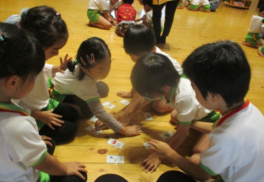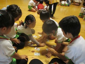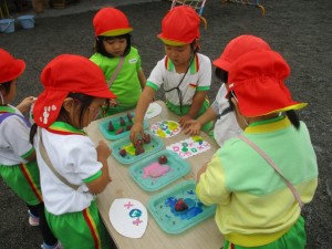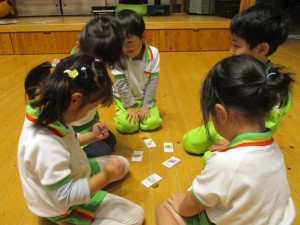 2024年11月15日 ハローわくわく🔤 きれいな声こえだね金曜日 サム先生のハローわくわくがありました。 今日は英語でカルタゲームをしたよ☆ サム先生が言われた乗り物ののカードをタッチ! 「つぎはどれかな」「よし!とれた」 もちろん、お手つきしないように手を頭の上や鼻に おいてからスタート みんなはやいはやい✋ 園庭ではみどりさんが新聞紙粘土で作品作り どんなものができるかな😀 どんどん祭りで楽しんだお芋スタンプ🍠 △や□などいろいろな形に掘ってあり どれにしようかな? 曇りでしたが暖かく、まだまだ薄着で過ごす子がたくさんで 元気いっぱいでした😊 Tweet Share