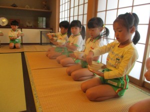 2024年11月5日 秋って楽しいね🍁 今日はお抹茶がありました🍵 前から後ろへお茶碗を クルッと回せるね👏 掛け軸は『甘柿』 甘そうな柿が描かれているね! そしてあかさん、お抹茶室デビュー☆ 少し緊張したけれど 初めてのお抹茶室嬉しかったね☺ トンネル開通!!! 手がとどくかな? きいさんはお散歩へレッツゴー! お抹茶室で見た甘柿を発見! 半分かじられている柿を見て 『あの柿甘柿だ!!』と 大喜び♡ つばきの実や落ち葉を拾って 秋みつけ!!!! 秋になると 色々な楽しいことがあるね!! Tweet Share