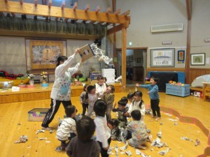 2024年12月3日 あたたかいお抹茶おいしいね♡ 12月はじめてのお抹茶は あかさんときいさん合同でした(^o^) あかさんにカッコイイ姿を見せようと、 きいさんは背筋ピンピンで お話を聞けていました! ゆっくり、ゆっくり… お運びさん、みんなの元にお抹茶を運びます ももさんは、おねえさん先生と 新聞あそびを楽しみました🎵 新聞シャワー大盛り上がり♡ ポカポカいい天気で”キャンプ日和” テントを立てて、道を作って 落ち葉ベットの上に、ゴロ~ン Tweet Share