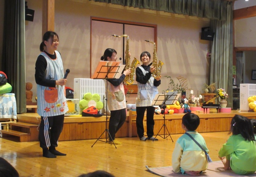 2024年12月19日 お楽しみ会があったよ♬ もりもり食べよう木曜日🍴 今日はお楽しみ会がありました♬ お手玉がいくつ見えるかな?? 楽器が好きな先生達が大集合🎺🎹✨ 「どんな音が鳴るのかな???」 テナーサックスやアルトサックス、トランペットに エレクトーンやグランドピアノなど たくさんの楽器を紹介してもらったよ☆ミ 素敵な音に興味津々👀✨ みんなの大好きなとなりのトトロや ラプンツェルや アナと雪の女王の連弾などたくさんの曲を 聴かせてもらえたね♡ 知っている歌は歌って楽しむ子もいました♬ そして最後はレッツダンス★ みんな大好きブリンバンバンボン!!! 先生の真似っこしながらキレッキレダンス♪ ジャンボリミッキーも踊ったよ☆ミ 池田こども園の先生ミッキーが登場して大盛り上がり✨ 楽しい時間を過ごせたね(*^。^*) Tweet Share