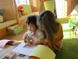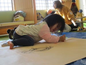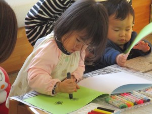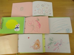 2024年12月3日 お絵かきあそび 今日は支援室でお絵かきあそびをしました。 クレパスや水性ペンでぐるぐる描いたり、 丸やお顔を描いたりして遊んだよ♬ 月齢の低い子は、 お母さんに手を添えてもらって お絵かきしたよ☆ お友達と一緒に大きな紙にぐ~るぐ~る…… お絵かきに表紙をつけて、 お絵かき帳の出来上がり✨✨ 本日もご参加頂きまして ありがとうございました。 また遊びに来てくださいね♡ Tweet Share