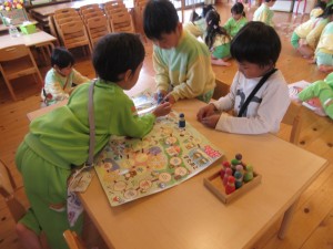 2024年12月25日 もういくつねるとお正月? 今日も寒い1日となりましたが こども園のお友達は元気いっぱいです。 みどりさんはお正月遊びをしました。 すごろく なになに・・・?「1マスすすむ」だって 友だちと考えながら楽しく遊べたね(*^。^*) たき火をしました。 たき火あったかいね♡ 心もからだもポカポカするね。 あかさんは、自分の使っているロッカーを大掃除です。 今年1年使わせてもらってありがとうの気持ちで お掃除が出来て立派さんでした。 風邪が流行しています。 手洗いうがいをしっかりして元気にすごそうね。 Tweet Share