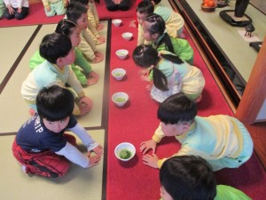 2024年12月24日 今年最後のお抹茶でした(^o^) かわいいお抹茶火曜日 今年最後ということで、 お正月のご挨拶をしたり 松竹梅の縁起の良い季節のお花の 話しを聞きました🎍 春頃に比べ、先生の話を聞く姿勢や 手で三角を作り、いただきますのご挨拶の 姿勢が立派で成長を感じます✨✨ みどりさんはおでこをぴったり床に くっつけることができてかっこいいね ももさんはリトミックをしました 足首を手で持ち、上を見上げる 『金太郎』ポーズ立派だね✰ Tweet Share