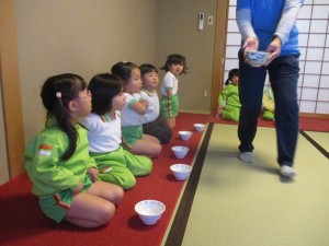 2024年12月17日 冬茶碗でお抹茶いただいたよ(^o^) かわいいお抹茶火曜日 『冬茶碗』を見せていただきました 「ゆきがかいてあるー」 「ゆき、いけだやまにあったよね」と おはなしが広がっていきます✨ たぬきさんのような「茶釜」が ポコポコとあたたかいお湯を作ってくれます 温かいお抹茶おいしかったかな? ももさんはお外に遊びに行く前に ダンスをして、体を温めました♡ きいさん羽子板遊びを楽しみました😊 「コンッ」といい音が聞こえてきたよ Tweet Share