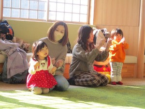 2025年1月23日 親子たいそう☆ 今日は支援室で親子たいそうがありました。 手遊びをしたり、体を動かしたりして 遊びました。 🎵むすんでひらいて~、 🎵てをたたきましょう~の手遊びは、 みんながお馴染みの歌だったので、 お母さんと一緒に楽しめました♡ お母さんのお膝に座っての、ふれあい遊びは、 にっこり顔がた~くさん見られ、ほっこり♡♡ 親子たいそうは、 お母さんに体を支えてもらったりして、 お母さんと一緒にいっぱい体を動かし、 ぽっかぽっかになったね(*^。^*) 本日もご参加頂きまして、 ありがとうございました。 また遊びに来てくださいね♡ Tweet Share
