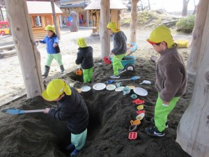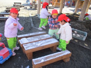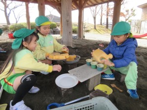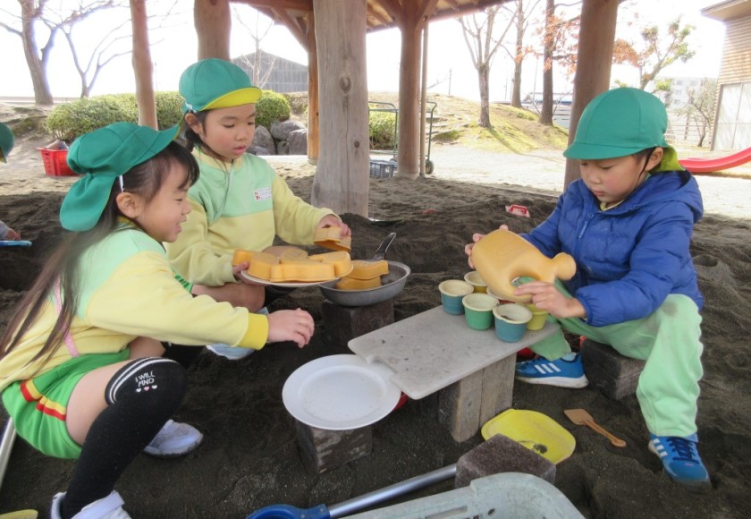 2025年2月20日 お日様がニコニコ!☺ もりもり食べよう木曜日🍴 今日は昨日とは違って、 日中は暖かく、お日様がニコニコしているような お天気だったね😄☀ みどりさんは、お友だちと おままごとパーティー🎵 「くださーい」「ありがとう~!」と 楽しそうなやりとりが聞こえてきそうだね👂 きいさんは、お友だちと協力して 大きな穴掘り! お皿やコップを並べて、、、 ”穴に気をつけて~!”とアピールしているのかな?☺ あかさんは、朝積もった雪を発見!!! 手で触って「つめたーい!」と言いながらも とても嬉しそうだね!❄ ももさんは、ブーンと車を走らせたり、 慎重に網の橋を渡ったりと、、、 園庭でも楽しく過ごしたね!☺ Tweet Share