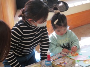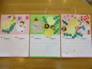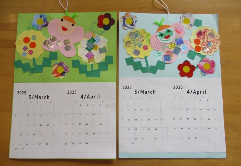2025年2月21日 3・4月のカレンダー作り 今日は支援室で3・4月のカレンダーを作りました。 まだ寒い日が続いていますが、 ちょうちょう🦋、たんぽぽを製作して 春のカレンダーを作りました。 お絵かきが好きなお友だちは クレパスでグルグル…た~くさん描き、 貼ることが好きなお友だちは、 のりをつけてペッタンしたり、シールを貼ったり、 好きなことをがんばって製作したよ(*^_^*) みんな素敵なカレンダーができあがりました✨ 本日もご参加頂きまして ありがとうございました。 また遊びに来てくださいね。 Tweet Share