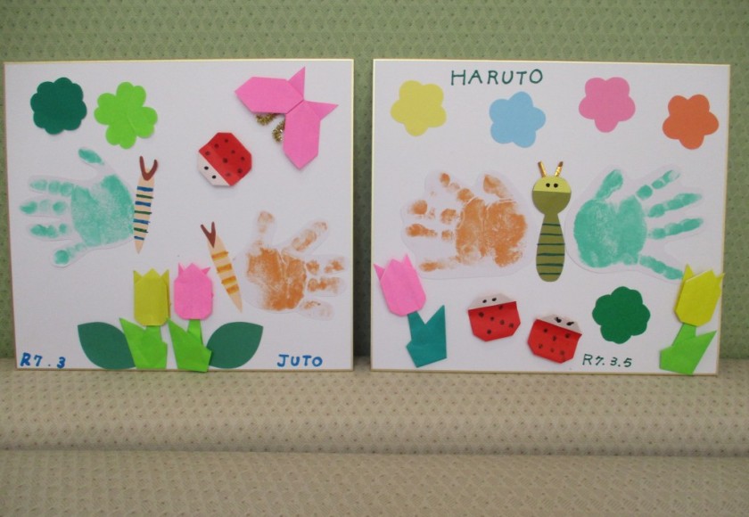 2025年3月5日 手形アート✋ 今日は支援室で手形アートがありました。 午前・午後、たくさんのお友達が 遊びに来てもらえました(*^_^*) スタンプ台をぎゅっぎゅっと押して色をつけ、 お手々をパー✋にしてペタン‼ 色紙にお絵かきしたり、 春の虫や花を貼ったりして飾りました。 お子さんとお母さんの共同作品♡ みんなの手形が、 鳥🐦🐤ちょうちょう🦋になり、 素敵な作品ができあがりました✨✨ 本日もご参加頂きまして ありがとうございました。 また遊びに来てくださいね。 Tweet Share