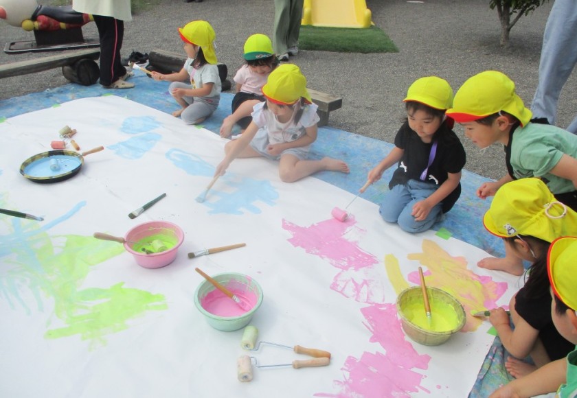 2025年4月25日 初めての参観日 今日は保育参観、保護者会総会がありました。 きれいな色のぬたくり遊び。 大きなキャンパスで描くのは気持ちがいいね! 普段どんなことをして遊んでいるのか 見て頂く良い機会になりました。 草花でごちそうづくり🏵️ お母さんにどうぞと渡して 嬉しそうでした。 ももさんもゆっくりお砂遊び。 あかさんは給食参観がありました。 どんなことに気をつけながら 園で食事をしているのかな? 知って頂けて嬉しいです。 また5月の参観でお待ちしています。 Tweet Share