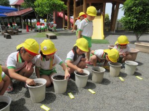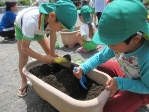 2025年5月19日 はーやくいっぱいさいてよね♡✿ 今日はみどりの風がふいて気持ちいい日だったね。 みどりさんは夏野菜とお花を植えたよ。 赤ちゃん(苗)のお家を掘ってあげよう! 優しく土のおふとんをかけて・・・ お水をあげたよ♡ これからどうやって育っていくのか楽しみだね♬ きいさんは千日草の種をまきました❁ 小さな小さな種だったね。優しい気持ちで できました♡ おにわに まいた はなのたね はーやくおおきくなってよね♪ これから水やりなどのお世話をして 大切に育てていこうね♡ あかさんは工事現場ごっこ✨️ デコボコのオフロードをトラックが走ります! ももさんはなかよくままごとあそび 美味しいごちそうが出来たかな? 明日も元気いっぱい遊ぼうね♡ Tweet Share