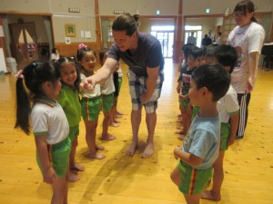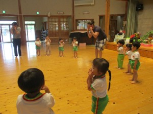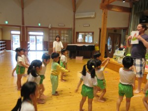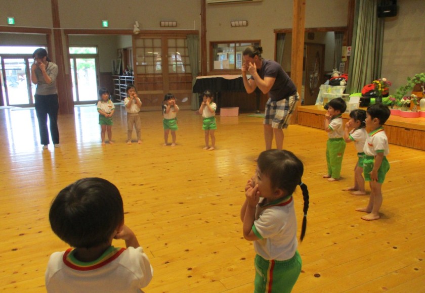 2025年5月16日 ハロー! 今日はサム先生と ハローワクワクがありました。 あかさん ヘッド、ショルダー、アイズ、イヤーズ 上手に真似っ子出来ました。 きさん 遊具さんのENGLISH!! 教えてもらったよ☺️ みどりさんはチームに分かれて じゃんけんします。 「マイネームイズ、、、」 自分の名前が答えられました。 生活の中でも「ブルーのサンダルだね」 など子ども英語がよく聞こえます(^o^) Tweet Share