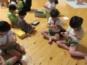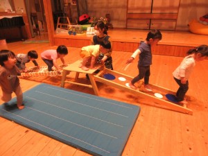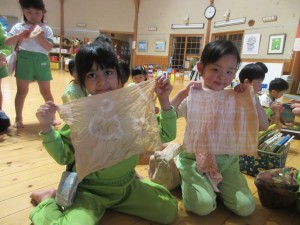 2025年5月2日 室内遊びを楽しんだよ☔ きい組さんのお部屋では レゴ遊びをして真剣な表情のお友達・・・ 大きいもも組さんはサーキット遊びが楽しかったね~♬ あか組さんは、リトミックのとんぼさんで 『ハイポーズ!』足がまっすぐ伸ばせて かわいいトンボさんです✨️ 金太郎さんポーズも頑張っているよ☺ みどり組さんも金太郎さんポーズ☆ 胸が反って天井がよく見えたね! 今日は、昨日染め物をしたさらしを広げたよ。 きれいな模様の出来上がり!! みどり組さん、とても楽しい体験ができたね♡ Tweet Share
