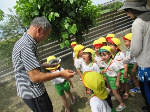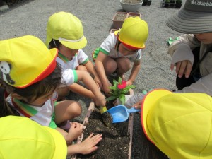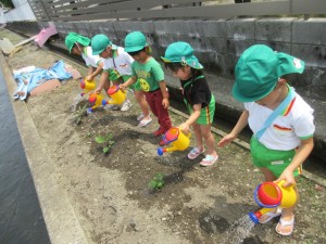 2025年5月21日 暑さに負けずたくさん遊んだよ! とても暑い一日だったね! 今日は新しい遊具のお披露目会がありました 園長先生から、小さなお家と ライオン🦁と、くまの可愛い乗り物をいただきました! お友達と仲良く遊ぶことを 副園長先生とお約束出来たね♪ みんなで楽しみながら 大事に使っていこうね☺️ 園長先生から桑の実を頂いたよ 甘酸っぱくて美味しかったね べーっと舌を出すと紫色になって面白い! みんなで舌の見せ合いっこをしたよ😛 みどりさんは夏野菜のオクラとナスに おおきくな~れ♪美味しくな~れ♪と 願いを込めながら水やりが出来たね プランターにお花を植えたり お花を使った色水遊びを楽しんだよ 暑さに負けずにたくさん遊べてよかったね☺️ Tweet Share