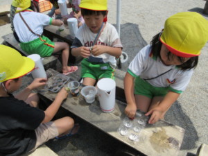 2025年6月19日 サンビレッジさんに訪問に出かけたよ🚌💨 もりもり食べよう木曜日🍚 今日はみどりさんはサンビレッジさんの 老人ホームへ出かけました。👨🦳👩🦳🍵 元気な声でお歌を歌って拍手を頂けて 嬉しかったね♬ 『トントントン…気持ちいいですか?♡』 優しい気持ちで肩叩きをして喜んでもらえました😄 みんなもおじいちゃん おばあちゃんのように いつまでも元気で長生きしたいね♬ きいさん 色水遊びをしたよ☆ キッチンペーパーに水性ペンでお絵かき🖍️ それを水につけてギュッと絞ると…色水に変身✨️ スポイトを使って梱包材の穴に向かって注入!!! 太陽の光に反射して、キラキラ光って とても綺麗だったね☆ あかさん カミキリムシを先生に捕まえてもらって 興味津々✨️✨️ 『カミキリムシって噛むのかな!?』 発見と共に生まれる疑問も学びの一つですね📒🖊️ 『でーんでんむーしむし かーたつむり~🐌🌿』 園庭でカタツムリを発見💡 バケツに入れてじっくり観察を楽しんだよ👀 Tweet Share