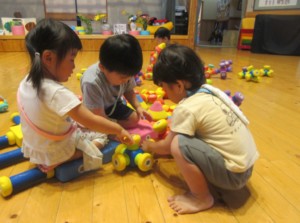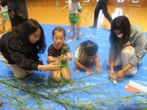 2025年6月16日 七夕交流会がありました☆ 今日は、みどりさんがサンビレッジの学生さんと 「七夕交流会」をしました。 学生さんと楽しいゲームをしたり 短冊に願い事を一緒に描きました。 「エルサになりたい!」 「お兄さんと同じ学校に行きたい!」 「みんながなかよくすごせますように」など 素敵な願い事が沢山でした。 学生さんと一緒に笹に飾りました。 さいごはみんなでハイタッチ!! 7月7日の七夕の日☆ みんなの願い事がかなうといいね。 雨上がりでお外でたくさん遊べました。 裸足で砂場に入ると、砂の感触が 気持ちいいね♡ ももさんはお友だちと一緒に ゆうぐをつなげて遊んだよ☆ 明日はとても暑くなるそうです。 体調管理をしっかりして元気に過ごそうね! Tweet Share