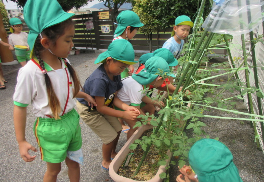 2025年6月27日 久しぶりの園庭遊び 昨日までの雨が上がって 久しぶりに園庭遊びが出来ました。 「きゅうりのびとる」 「とまとおちてる」 少し見ない間にお野菜の様子が変わっています。 収穫はもうすぐですね\(^o^)/ 梅雨はおもしろいね☔ 優しい虫さんがいっぱいだ。 暑いから池でクールダウン。 「いえーい!」 来週からは暑くなるみたい。 早寝早起き朝ごはんで元気な体作りをしようね! Tweet Share