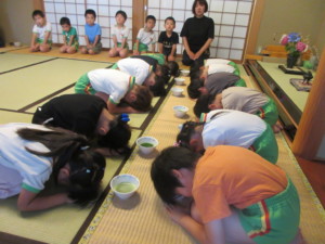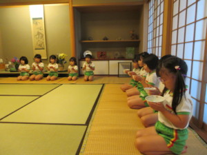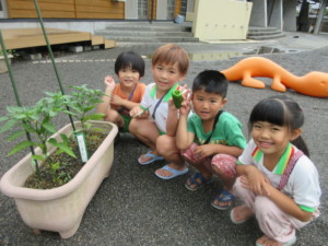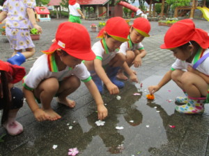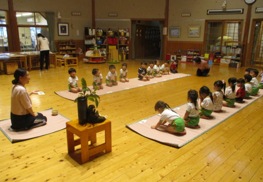 2025年6月24日 雨が降ったり止んだりの一日だったね🐸 「ほとけさまいただきます」 手で三角さんを作ってご挨拶するよ 床の間の掛け軸には「びわ」 季節のお花は「紫陽花」が お嫁に来たよ✨ 「お茶をおあがりください」 お運びさんがお客様のところに 届けるよ(^^♪ 6月最後のチャンピオンカードには どんな絵が描かれていたかな?🐌☔ あかさん水たまりに お花を並べたよ🌺 ゆらゆら浮いてきれいだね ピーマンときゅうりを収穫したよ🥒 みんなで育てた野菜は愛情たっぷりで きっとおいしいね♡ みどりさん遊戯室を 雑巾がけでお掃除✨ 床がピカピカになったよ。ありがとう! Tweet Share