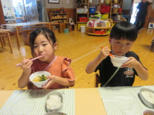 2025年7月7日 きょうは七夕✰ 今日は七夕ですね。 こども園では七夕会をしました。 彦星さんが育てたお野菜や 織姫さんが織った布をお供えしました✰ 七夕のおはなしのパネルシアターをみました。 たなばたさまの歌をみんなで歌いました。 願い事が叶いますように♡ 給食も「七夕メニューでした✰」 「天の川そうめん」です。 ツルツルと美味しくいただきました。 例年ですと、七夕は天気が悪いことが多いですが 今日は晴れ!夜空を見上げると 天の川や彦星さん、織姫さんが 見れますように♡ Tweet Share