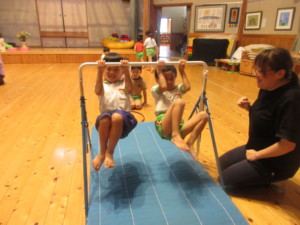 2025年7月14日 暑さに負けないよ! 大きいももさんはリトミックでトンボのポーズ! 頑張って決めポーズ!! あかさんは先生に支えてもらいながら鉄棒で 腕を伸ばしたよ! ドキドキしたね。 つばめポーズかっこいいよ✰ きいさんは、支えがなくなっても出来るように なってきたんだね。足もまっすぐに伸ばしたよ! みどりさんは、腕の力で鉄棒から落ちないように お腹にも力を入れて頑張ったね。 今日も暑さに負けずに身体をたくさん使って 遊べたね☀️ Tweet Share
