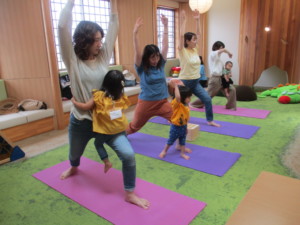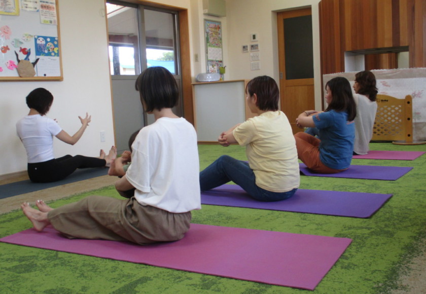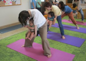 2025年7月9日 親子ヨガ 今日は支援室で親子ヨガがありました。 お子さんを抱っこされたり、 お子さんに目線を合わされたりして 前傾姿勢になりがちなお母さんに ヨガでスッキリ✨️✨️してもらいました。 お母さんに落ちないようにしがみついたり、 お母さんのポーズを真似したり… 親子で触れ合ってあそびました。 ゆ~らゆ~らブランコのポーズ! 子ども達にとっては嬉しい楽しいあそび♡ お母さんにとっては、お子さんの重みがかかって 大変そうですがヨガ効果倍増です。 おしりで1・2・1・2… 産後の骨盤を元の位置に戻す効果があり、 お腹や太ももにも効きますよ。 親子ヨガは来月も開催しますので ぜひ遊びに来てくださいね。 Tweet Share