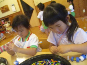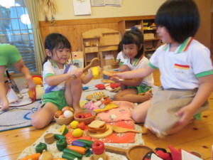 2025年7月17日 雨でもたくさん遊べたね♬ もりもり食べよう木曜日🍚 今日は朝から大雨でビックリだったね☔💦 お遊戯室でリトミック♬ 金魚さんになりきって元気に泳ぐよ🐟️ うさぎさんになって元気よくジャンプ!!! かわいいももさんうさぎさん みーつけた🐰♡ 『コーヒーはいかがですか?☕』 『デザートもありますよ🍨』 美味しそうなごちそうがたくさんで どれもこれも食べたくなっちゃうね🤤❤ 真剣なお顔で廃材を通しています。 穴に通るかよく見て集中力がすごい✨️ 指先も発達してたくさん通せるようになったね✰ Tweet Share
