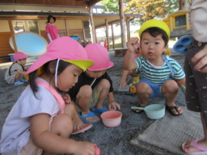 2025年8月8日 みんな元気で☺️ 今日はみんなでお盆前の参拝ができました。 お盆ってどんな日?を教わりました。 みんなで手を合わせて みんなの大事な命に「ありがとう」ができました。 夏休みに遊びに来てくれたお姉さんに遊んでもらったよ。 夏の思い出がまた一つできました。 カエル見つけ🐸 園庭のお花を凍らせて 足湯ならぬ足氷水 「つめたーい\(^o^)/」 クールダウンしながら遊びました。 昨日は立秋だったからか 今日は比較的過ごしやすい日でした。 あわてんぼうの小さい秋が見つかったみたいです(^o^) Tweet Share