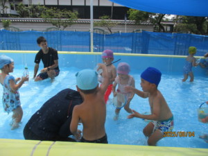 2025年8月4日 今日もお水と仲良しだったね🌞 みどりさんはワニさんになって体をプカプカ! 顔をつけてもいいよ🐊 気持ちいいね! きいさんも、ワニさんでおさんぽ🐊 足をバタバタしても楽しいね♫ あかさんはバケツやシャワーでお水のかけっこをしたよ☺️ 今日もみんなお水遊び楽しかったね🌞✨️✨️ Tweet Share