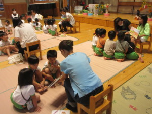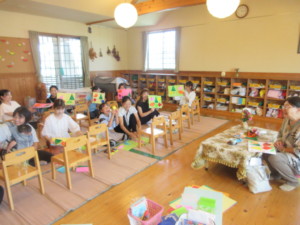 2025年8月7日 読み聞かせがあったよ📖 もりもり食べよう木曜日🍚 今日は読み聞かせがありました📖 たくさんのお家の方や卒園児のお友達が お出かけ下さり、ありがたいことです🙇♀️ あ母さん方の傍で優しい声を聞きながら 絵本の世界へ…📖☆ お話に夢中になって真剣に聞き入っています。 お母さんやお姉さんの声は耳に心地良いね♡ 果物や乗り物など、絵が可愛らしい絵本もあり、 指さしたりと楽しんでいます♫ 樋口先生の講座がありました。 和やかな雰囲気でお話を伺い 色画用紙と折り紙を用いて蝶々や犬など 折って飾りました✨️ お部屋のお掃除をしました🧹 いつもありがとうの気持ちを込めて 綺麗にできたね☆ Tweet Share