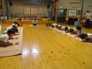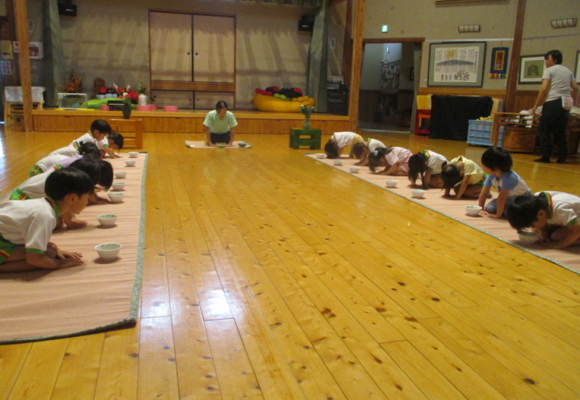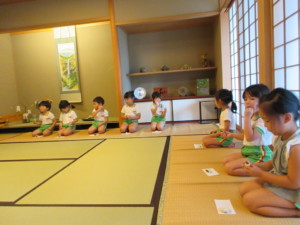 2025年8月26日 8月最後のお抹茶だったよ(^^)/ かわいいお抹茶火曜日🍵 「ほとけさまいただきます」 みんなで声をそろえて ご挨拶ができるね☆ 床の間の掛け軸には 「たき」が描かれており 見ているだけで 涼しくなるね🎐 あかさんワニさん歩きで フラフープくぐり~ プール遊びもあと2回! みんなで楽しもうね(*^^)v Tweet Share