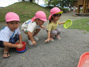 2025年9月18日 元気いっぱい外遊び もりもり食べよう木曜日 いいお天気でたくさん外で遊べたね😁 「みてみて~」 「じゃーん!カナブン捕まえた!」 どんな色?足は何本あるかなあ? 大きなフライパンで料理するよ🍴 調味料入れるよ 「まぜまぜ~!おいしくなーれ」 どんな料理ができたかな 園庭にたくさんどんぐりが落ちていたね 「あ!あんなところにどんぐり!」 「あっちにもある✨️たくさんあって拾うのが大変だ~☺️」 Tweet Share