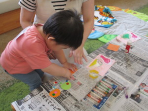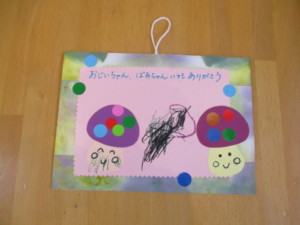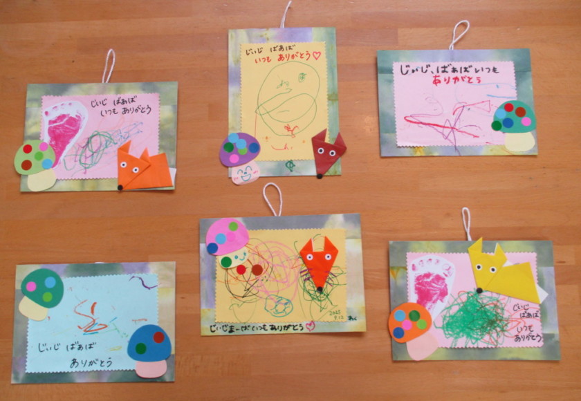2025年9月12日 敬老の日の製作② 今日も支援室で 昨日と同じ内容で 敬老の日の製作をしました。 お絵かきしたり、シールを貼ったり… 折り紙にも挑戦したよ✌ お母さんにメッセージを書いてもらって 素敵なプレゼントができました。 おじいちゃん・おばあちゃんに お渡しできる日が楽しみだね♡ 本日もご参加頂きまして ありがとうございました。 また遊びにきてくださいね。 Tweet Share