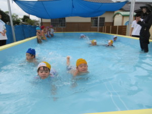 2025年9月4日 最後の水遊び楽しかったね☆ もりもり食べよう木曜日🍚 今日はサンビレッジの学生さんが 遊びに来てもらえました。 シールを一緒に選んだり、人形や木の遊具で ゆったり遊んでもらって楽しかったね♬ 最後の水遊びでした!!! 初めは顔を水面につけるのも少し不安だったけど お友達の姿を見たり先生に励まされたりして 顔つけが出来るようになったね✨️ 刺激を受けて頑張る力が身についたね☆ 腕の力で身体を支えることに慣れてきて 自分の進みたい方向に行けるようになったね\(^o^)/ プールの端から端まで余裕で行けちゃうよ✌ 仲良くおててを繋いでブクブクブク… 一緒に潜るの楽しいね♬ お水の中はどんな世界だったかな??? 今日で水遊びは最後だったけど、次は秋みつけの時期が やってきて、また新たな楽しみがあるね🍂 秋風を感じながら開放感の中でお外遊び楽しもうね♡ Tweet Share