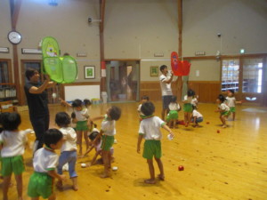 2025年9月22日 涼しくなってきたね☺ 朝晩はぐんと涼しくなってきたね。 松村先生と体育あそびをしたり、 園庭で元気に遊べたよ☺ あかさん あかチームもしろチームもガンバレ~!! かごの中にたくさん入るようになって 嬉しいね♡ 「♬どんぐりころころ どんぶりこ~」 お山にはいろんな大きさのどんぐりが いっぱいだったね。 どんぐりバックの中がいっぱいになったね。 「せんせー!あんな高いところにカエルが!!」 「どうしよう?届かんなぁ??」と話していたら・・・ 園長先生がとってくださいました。 良かったね♡遊んだあとは 「また遊ぼうね~」と逃がしてあげることができたね。 明日は「秋分の日」「お彼岸のお中日」です。 彼岸花がお嫁に来ました。 お家の近くにも彼岸花が咲いているかな? お子さんと一緒に見つけてみてくださいね。 Tweet Share