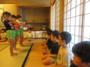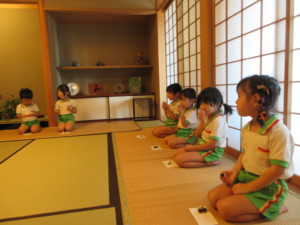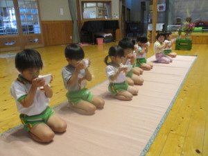 2025年9月16日 秋の七草がお嫁に来たよ(*^^*) 火曜日はみんな大好きお抹茶です♡ 「しずかな気持ち」でお抹茶を いただくよ。 今日のチャンピオンカードは どんな絵が描かれているかな? ワクワク! 床の間には秋の七草がお嫁に来たよ! 「おみなえし、すすき、ききょう なでしこ、ふじばかま、くず、はぎ」 「お・す・き・な・ふ・く・は」で 覚えている子もいたよ☆ おまんじゅうを割っていただくよ おいしいね(^o^) みどりさんのお運びさんは お客様に運んでいくよ。 園庭には小さなどんぐりがたくさんです。 「あった!」と見つけたどんぐりを お家へのお土産にする子もいたよ☺️ Tweet Share